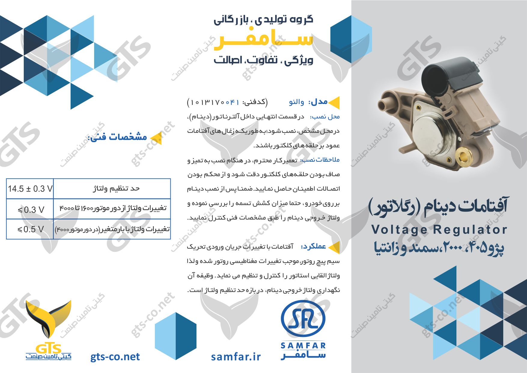 آفتامات( رگلاتور) دینام پژو2000 ,405 ,سمند و زانتیا مدل والئو