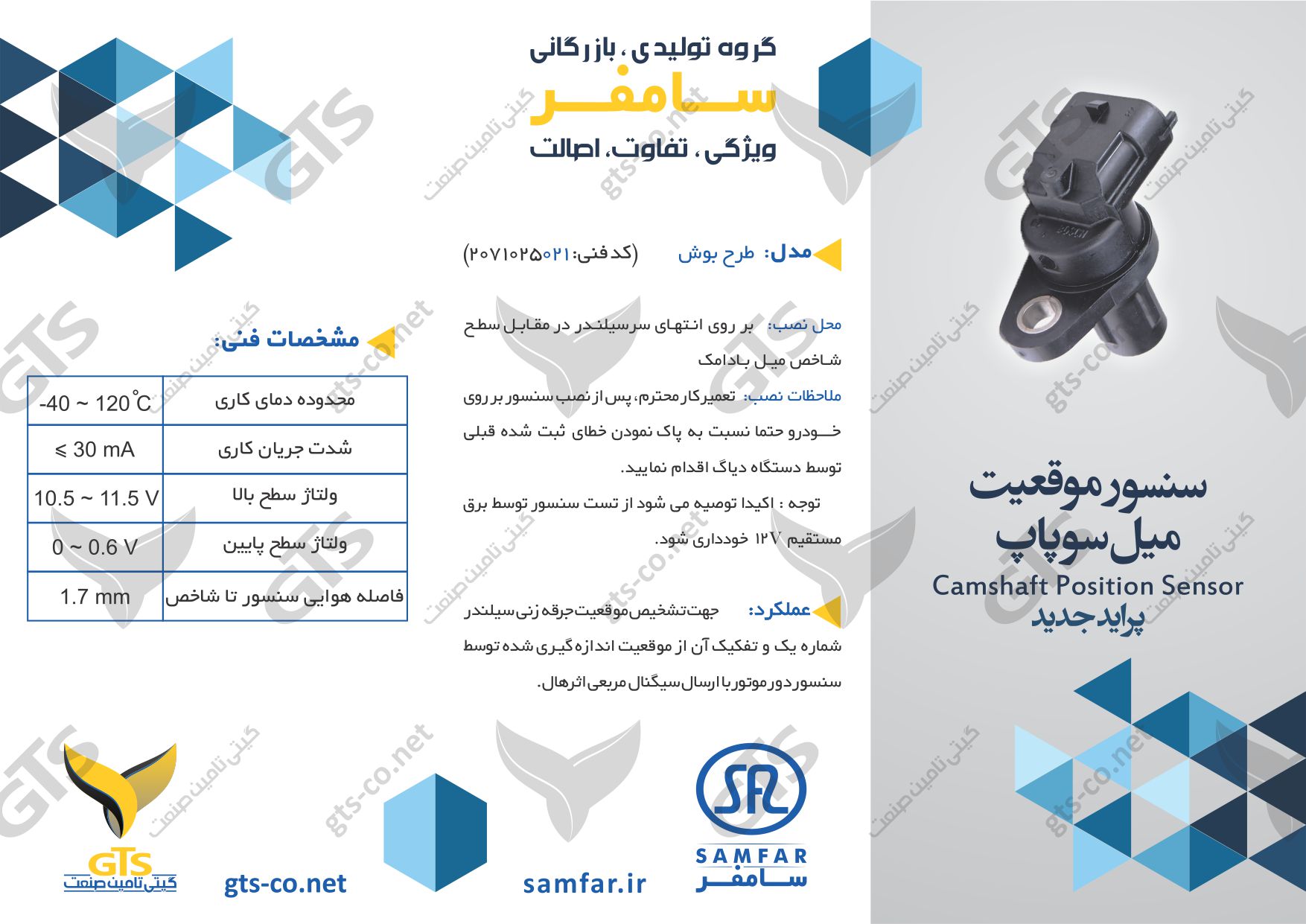 سنسور میل سوپاپ پراید طرح بوش